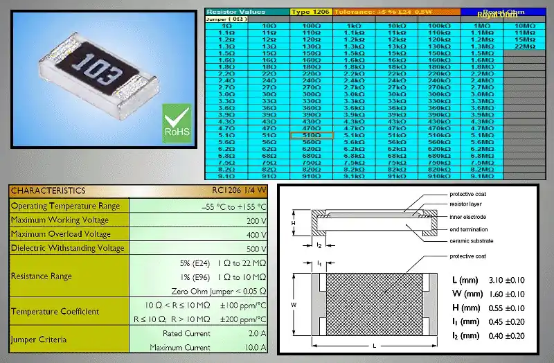 0.5W CHIP ellenállás 510R 5% SMD 510R 1206 Expressz szállítás mennyiség