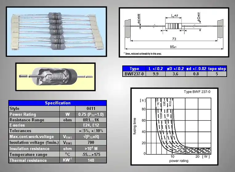 0.75W fémréteg film ellenállás, biztosítékkal 0.82R 10% RES 0R82 0.75W Prémium