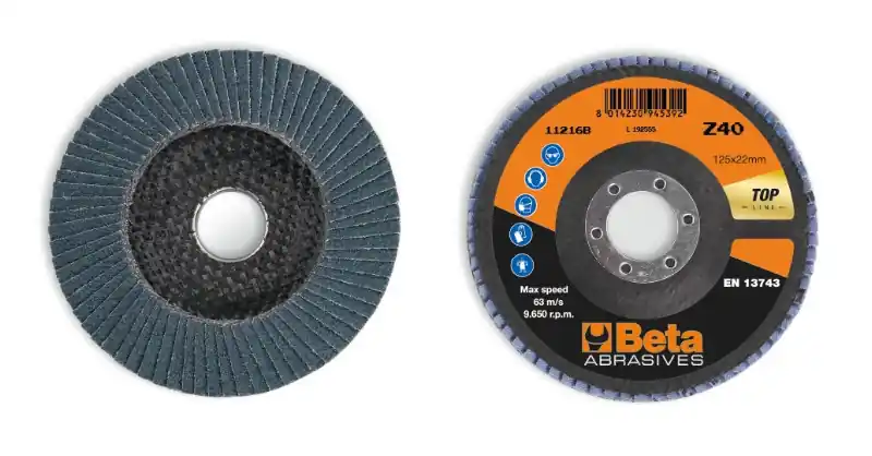 11216B 80 Csiszolótárcsák cirkónium csiszolóvászonnal, üvegszál csiszolótalp, egylamellás kivitel – Beta – 112160108