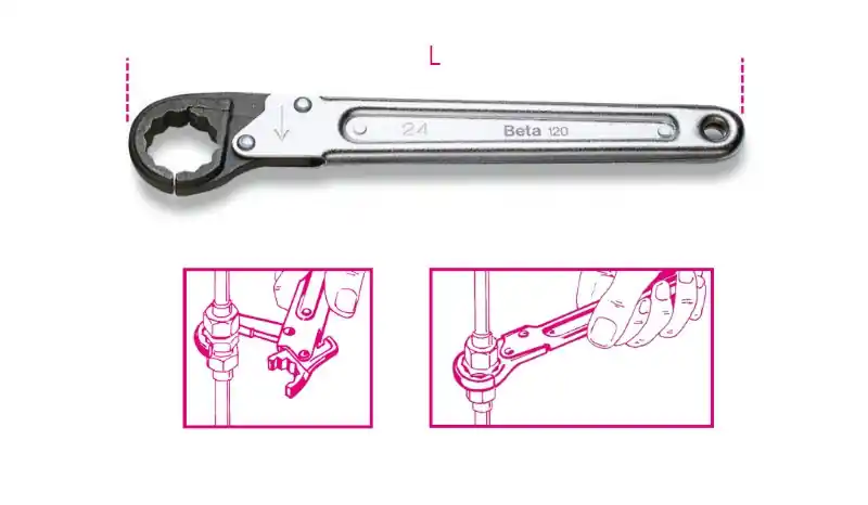 120 Nyitható racsnis hollander kulcs, krómozott, barnított fejjel 12 – Beta – 001200012