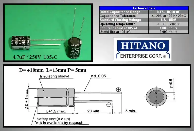 4,7uF 250V 105° 10×13 álló 4.7/250P-105 H Biztonságos fizetés