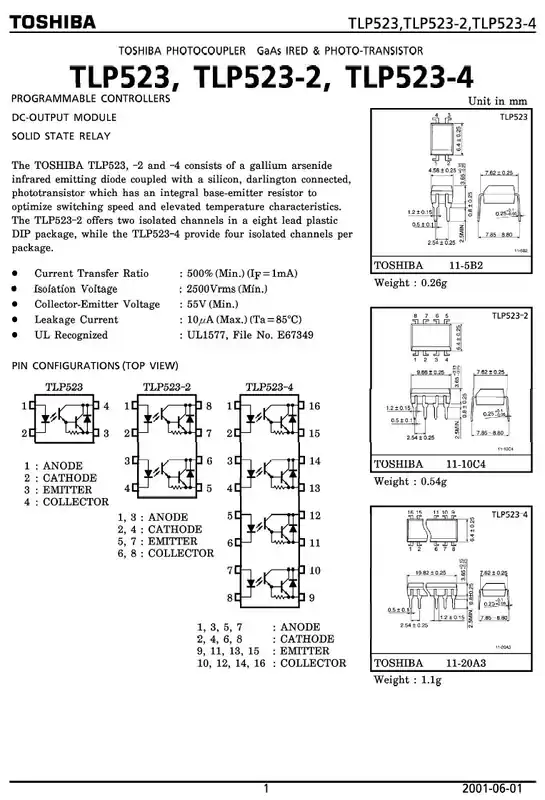 4-CH OPTO COUPLER DARL.OUT 16p. TLP523-4 Eredeti