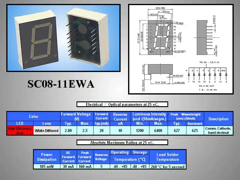 7 SEGM.DISPLAY 20mm CC. RED SC08-11EWA Ajánlat mennyiség