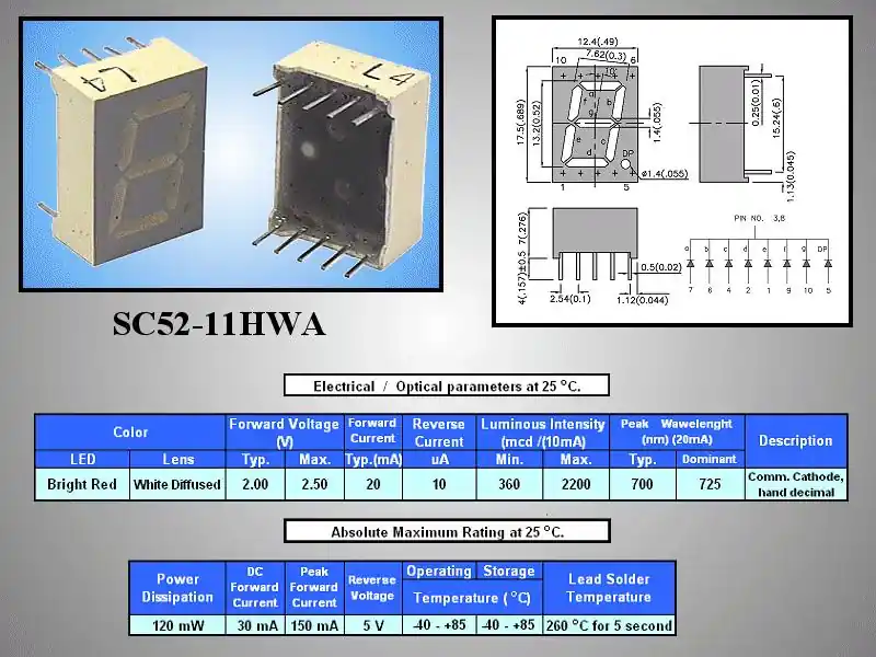 7 Szegmenses kijelző 13mm K.K. piros SC52-11HWA Biztonságos fizetés