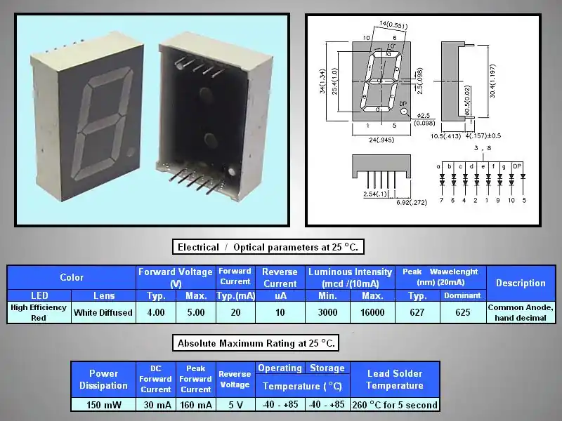 7 szegmenses kijelző 25mm közös anód nagy hatásfokú piros