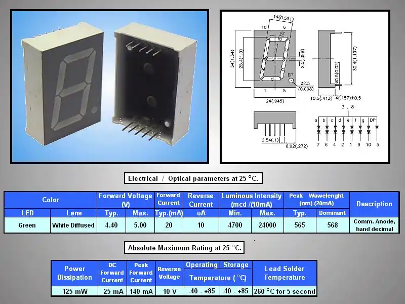 7 szegmenses kijelző 25mm közös anód zöld