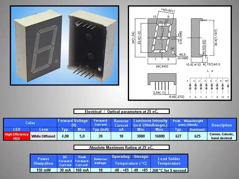 7 szegmenses kijelző 25mm közös katód nagy hatásfokú piros