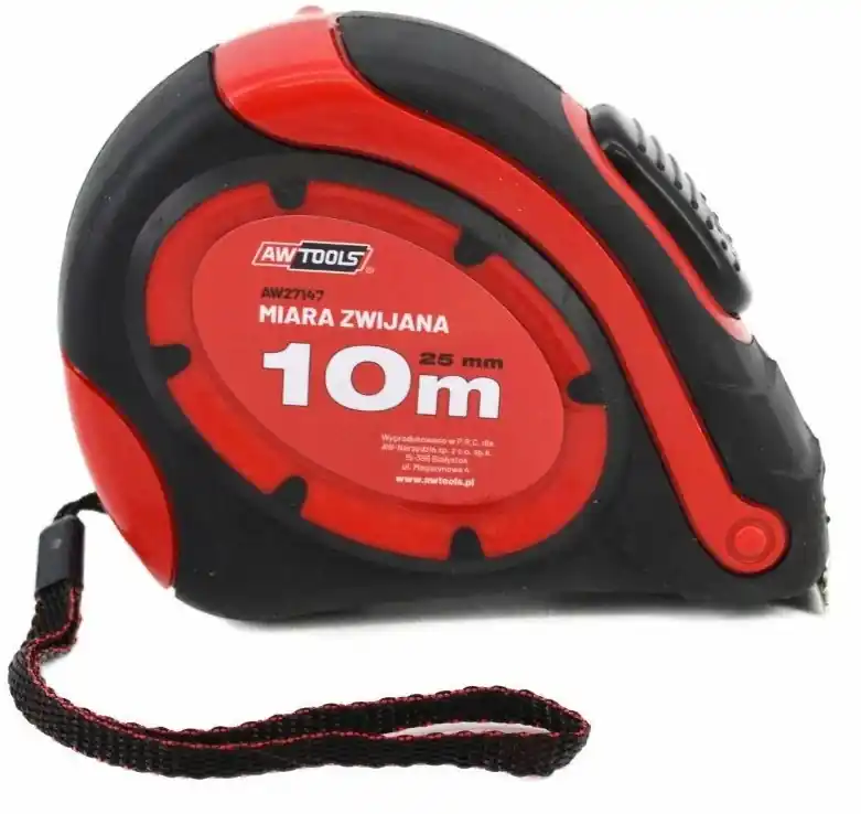 AWTools mérőszalag Professzionális acél mérőszalag rögzítőszegecsekkel megerősített mágneses véghoroggal.Ergonomikus ABS ház, TPR bevonattal.Sárga acélszalag, nylon bevonattal, jól látható fekete metrikus beosztással.Övcsipesszel és csuklópánttal felszerelve.Megbízható szalagtekerccsel és hüvelykujj által működtetett reteszelő rendszerrel, valamint 1 STOP gombbal felszerelve.Ellenáll a kopásnak és az időjárási viszonyoknak.Tökéletes mérőeszköz otthoni vagy professzionális használatra.