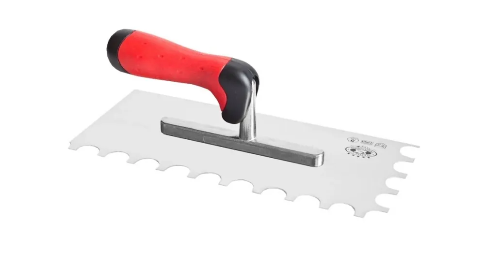 • Ergonomikus kialakítású, kémiailag semleges, kétkomponensű, gumírozott, lágy tapintású markolat• Szívós, 4 ponton hegesztett, magas igénybevételekkel szemben ellenálló rozsdamentes stabil acélszár, mely merev kapcsolatot biztosít a markolat és a glettvas között• Rozsdamentes acél glettvas:- két egymás melletti oldalon R10mm félkör alakú fogazással- vastagság 0,7mm- szakító szilárdsága >1500N/mm2- keménysége >46HRCCikkszámméret (mm)042104-0048