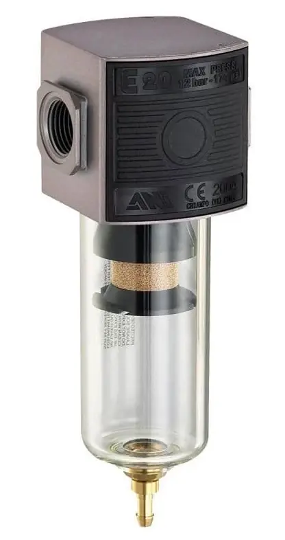 E/20/3 víz- és olajleválasztó, levegőszűrőEzt a moduláris szűrőt úgy tervezték, hogy eltávolítsák a szilárd és folyékony szennyeződéseket a pneumatikus rendszerekből.Szűrési határ: 40 µ PE szűrőbetétGyorscsatlakozós fém vagy polimér edényFélautomata leeresztőÖrvénylapátos rendszer a kondenzátum hatékony leválasztásához