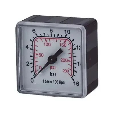 Nyomásmérő skála: 0-16 bar / 0-230 psi2.5 pontossági osztályMűanyag burkolatFehér számlap