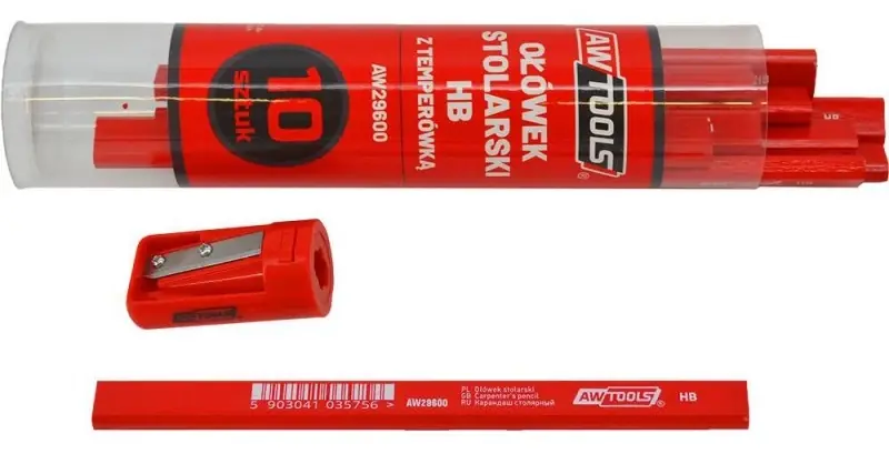 AWTools ácsceruza fához Téglalap keresztmetszetű, HB ácsceruza.Tartós és tiszta vonalak meghúzására tervezték.Tökéletes fafelületeken való használatra.Könnyen hegyezhető a ceruzabél eltörésének veszélye nélkül.Univerzális hegyezővel szállítva.