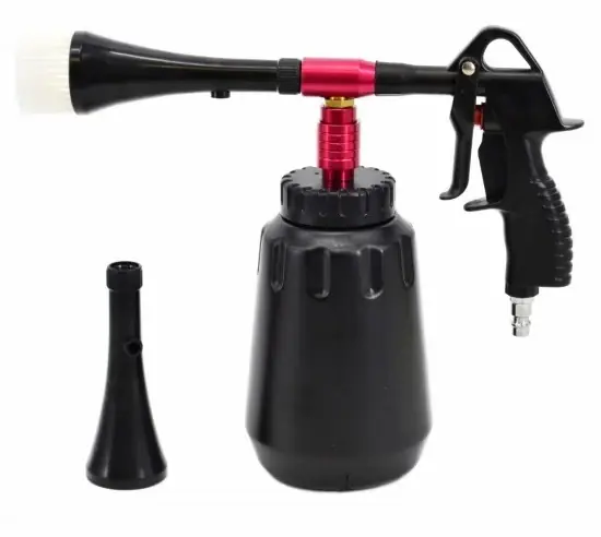 AWTools kárpittisztító pisztoly fúvókákkal Kárpittisztításra tervezték. Szennyeződések eltávolítására textíliákról, autókárpitról, szőnyegről, felnikről, szellőzőnyilásokról, rendszámtábláról, motorról, és a többi.A beépített szelep lehetővé teszi a tisztítószer mennyiségének adagolását.Alacsony zajszint.Ergonomikus műanyag markolat.Golyóscsapágy hajtás.Praktikus akasztó lyuk.Kompresszorhoz kell csatlakoztatni.A készlet tartalma:1 db pisztoly 1000 ml-es tartállyal2 db fúvóka (tölcsér + kefe)