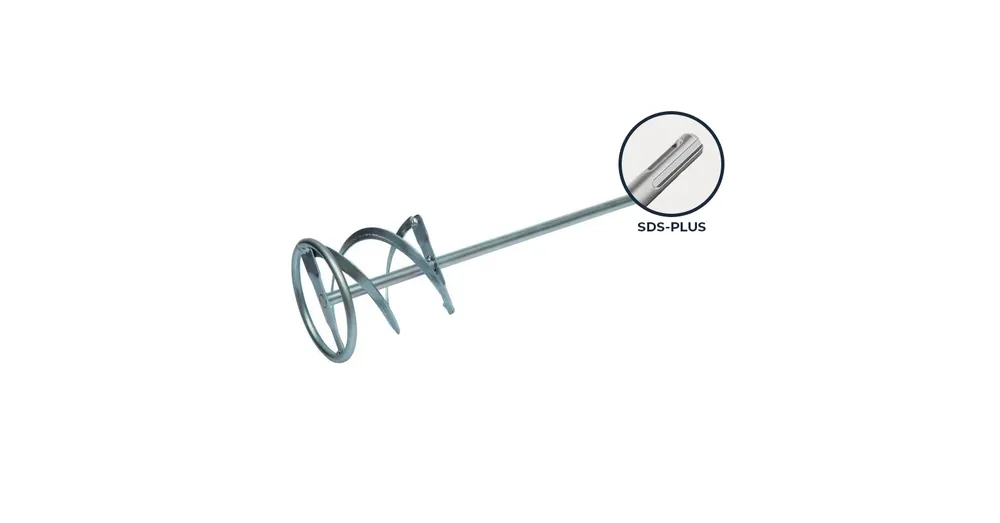 • Festék- és habarcskeverőszár keverőgépekhez• Keverés alulról felfelé, a keverő maga is becsavarodik az anyagba, a gyűrű védi a tartályt• Felületkezelt kivitel• Erős központi szár és 2db spirál• SDS-Plus csatlakozási lehetőség a meghajtóegységhezcikkszámméret (mm)maximum anyagmennyiség (kg)csatlakozás042110-0038