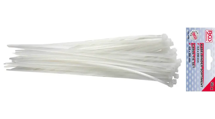 BGS-1788 Kábelkötegelő, fehér, 50db, 4.8 x 250mm” />