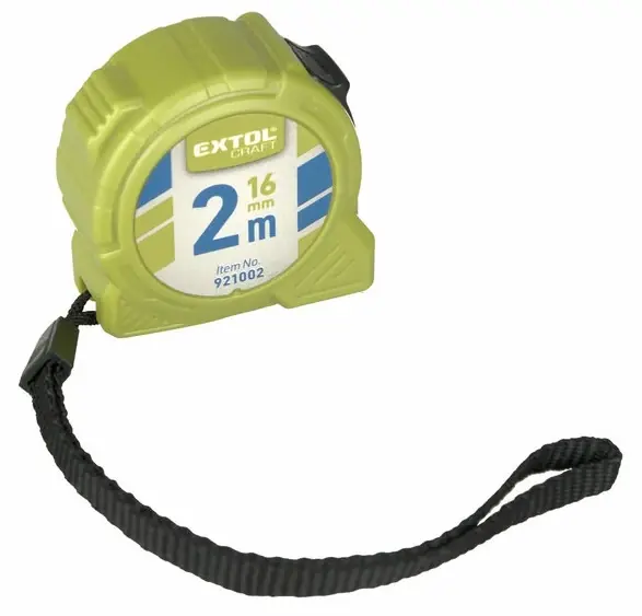Extol Craft mérőszalag Egyszerű mérőszalag pontos mérésekhez.ABS műanyagból készült ház.Stop funkcióval rendelkezik. Ha kihúzzuk egy adott méretig a szalagot, a stop kapcsolóval rögzíteni tudjuk abban a pozícióban. Visszacsévélés a kapcsoló visszaállításával lehetséges.Rugalmas, 16 mm széles acéllemez.Jól látható milliméter beosztás.