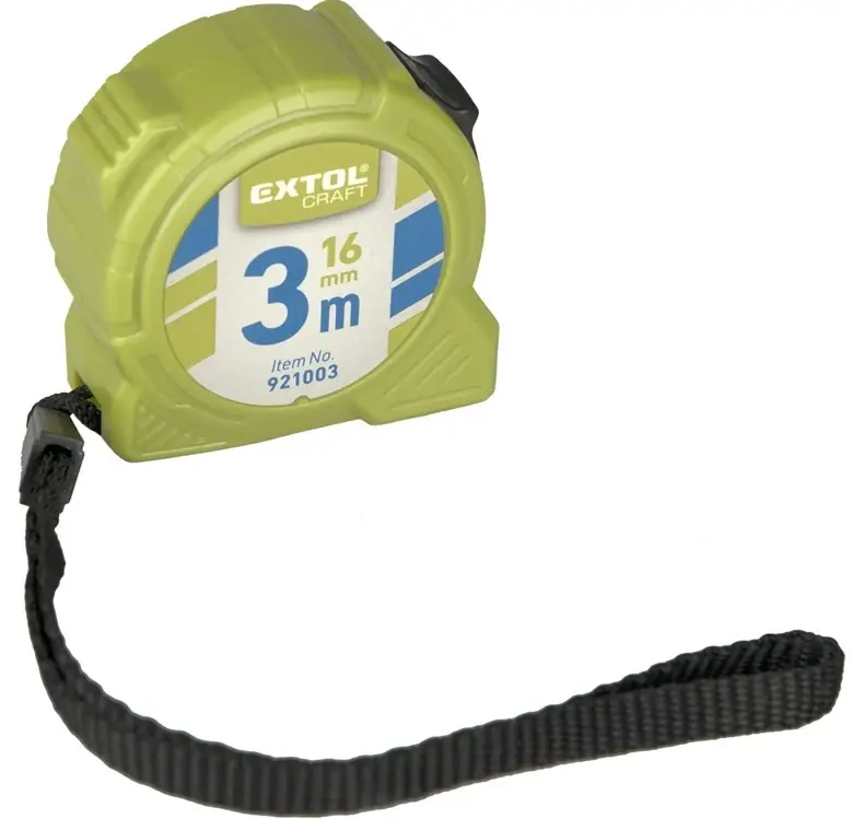 Extol Craft mérőszalag Egyszerű mérőszalag pontos mérésekhez.ABS műanyagból készült ház.Stop funkcióval rendelkezik. Ha kihúzzuk egy adott méretig a szalagot, a stop kapcsolóval rögzíteni tudjuk abban a pozícióban. Visszacsévélés a kapcsoló visszaállításával lehetséges.Rugalmas, 16 mm széles acéllemez.Jól látható milliméter beosztás.
