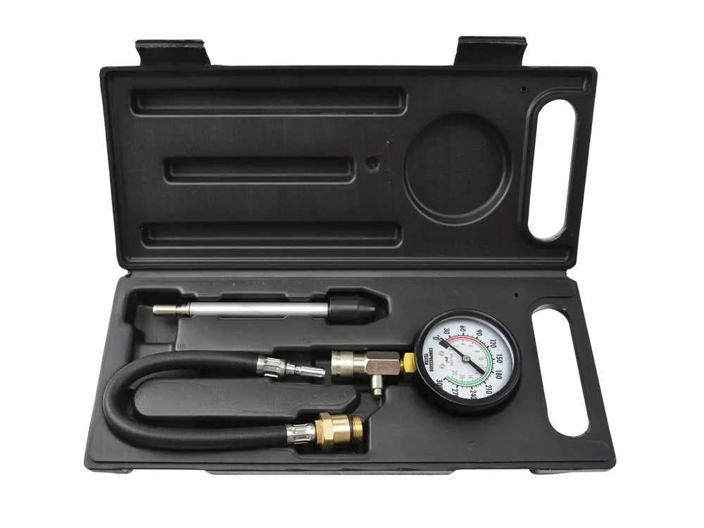 Kompresszió mérő benzines típúsokhoz, flexibilis csővel.A flexi csőnek köszönhetően könnyedén mérhetőek vele azok a típusok is, amelyeknél a gyertya mélyen a hengerfejben van. Csak kézzel tekerje bele a menetes végű flexibilis csövet a gyertya helyére. Menetes részen található gumigyűrű letömít így 1 személy elég a kompresszió méréshez.0-20 bar mérés tartományLeeresztő szelepkb. 25-30 cm hosszú flexibilis gumicsőA kompresszió mérő alkalmas mind a két fajta gyertya menetekhez (M14- M18)