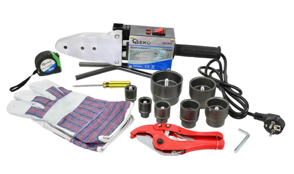 Geko PPR csőhegesztőgépErőteljes 1500 wattos csőhegesztő gép biztosítja a hegesztőaljzatok gyors felmelegedését.A gépet műanyag csövek, például PP-R, PB, PE, PE-X összekötésére használják.Két fej egyszerre telepíthető az egységreHőmérséklet tárcsa: 0-300 ° CTeflonnal bevont hegesztőaljzatokCsomag tartalma1db csőhegesztő gép7db hegesztő foglalatok: 16mm, 20mm; 25 mm; 32mm; 40mm; 50mm; 63mm1db mérőszalag 3m1 pár kesztyű1db csavarhúzó1db PVC 42mm-es csővágó1db állvány1db hatlapú kulcs