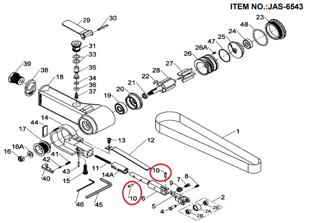 Jonnesway JAS-6543-10 rögzítő csap a JAS-6543 levegős szalagcsiszolóhoz