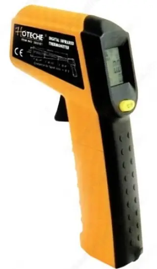 Hoteche digitális távhőmérő Megbízható digitális távhőmérő, infravörös lézerrel, ami kiválóan alkalmazható akár távoli mérőpontok hőmérsékletének megállapításához.A szerkezet képes Celsiusban és Fahrenheitben is mérni, egyetlen gomb segít az átváltásban.Két darab LR03-as elemmel működik, így egyszerűen naprakészen tartható.