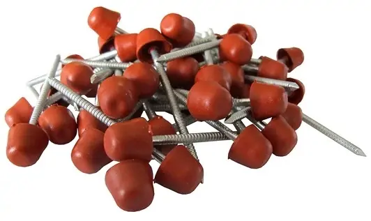 SB hullámlemez szeg műanyag fejjel Bitumenes hullámlemezek rögzítéséhez használható.A hullámlemez szeget kalapáccsal rögzítse a megfelelő helyre.A hullámlemezzel azonos színű, tartós műanyag fejjel rendelkezik.Korrózióálló horganyzott felületkezelés.