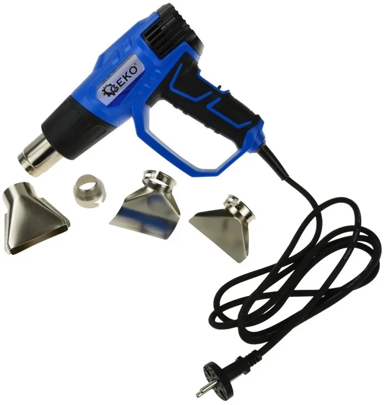 Geko hőlégfúvó Elektromos hőlégfúvó 2000 W teljesítménnyel, amely lehetővé teszi az 550 °C-os hőmérséklet előállítását is.A készülék 5 hőmérsékleti és 3 légáramlási beállítással rendelkezik.Kiválóan alkalmas régi festékek, különböző típusú lakkok eltávolítására, zsugorodó anyagokkal való munkához. Jól használható műanyag csövek deformálására, fagyott, nem műanyag vízvezetékek jégmentesítésére.Hővédelemmel rendelkezik, amely megakadályozza a készülék túlmelegedését. Kényelmes D-markolat, gumi borítással.Tartozékok:4 fúvóka