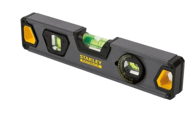 FatMax Box torpedo vízmérték 2 fix libellával és egy 360° -ban forgatható libellávalA központi libella felnagyított a könnyebb leolvasás érdekében 2 mágnes a talprészen biztosítja az egyszerű használatot acélfelületen, állványzatonFelülméretezett gumírozott végzárók ütésvédelmet biztosítanakErős alumíniumház , boksz forma és könnyű súly jellemzőkkel