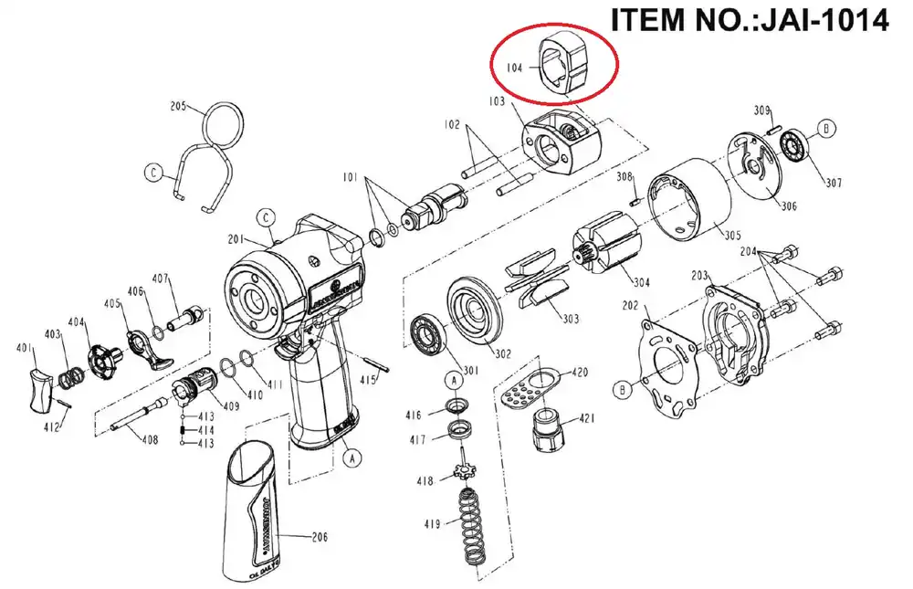 Jonnesway JAI-1014-104 kalapács a JAI-1014 légkulcshoz