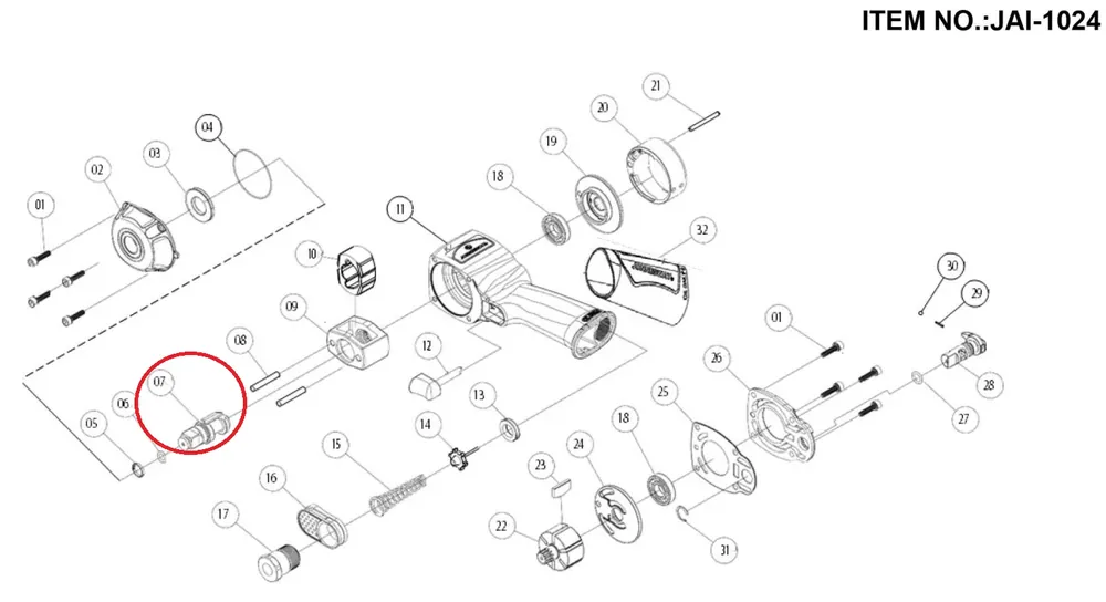 Jonnesway JAI-1024-07 standard üllő a JAI-1024 légkulcshoz, 1/2″
