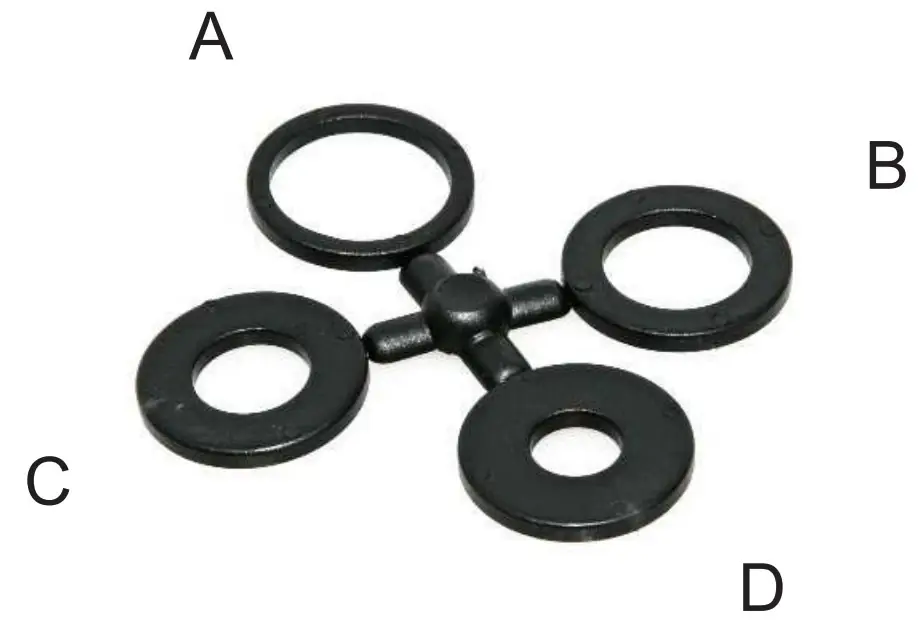 Arnetoli redukciós gyűrűkészlet nylon vágótárcsához Gyűrűméretek:A: 1” – 20 mmB: 1” – 5/8”C: 1” – 1/2”D: 1” – 3/8”