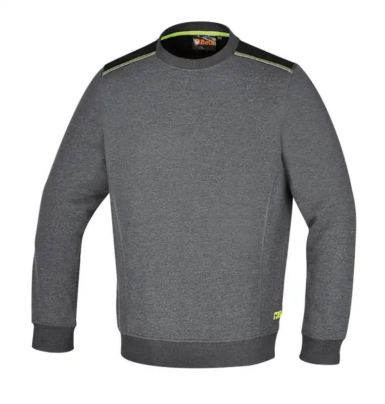 7642G/M Kerek nyakú, hosszú ujjú felső, 240 g/m2,60% pamut, 40% poliészter,melange szürke – fekete betétekkel – Beta – 076420002