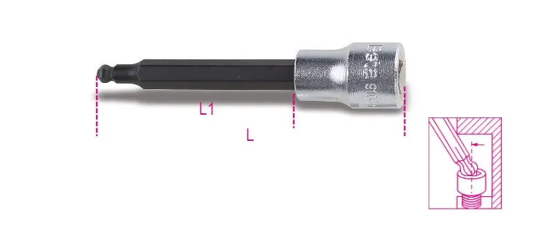 910BP hatlapfejű külső Dugókulcs gömbölyű véggel 3/8″ belső négyszöggel krómozott – barnított betétek – Beta – 009100585