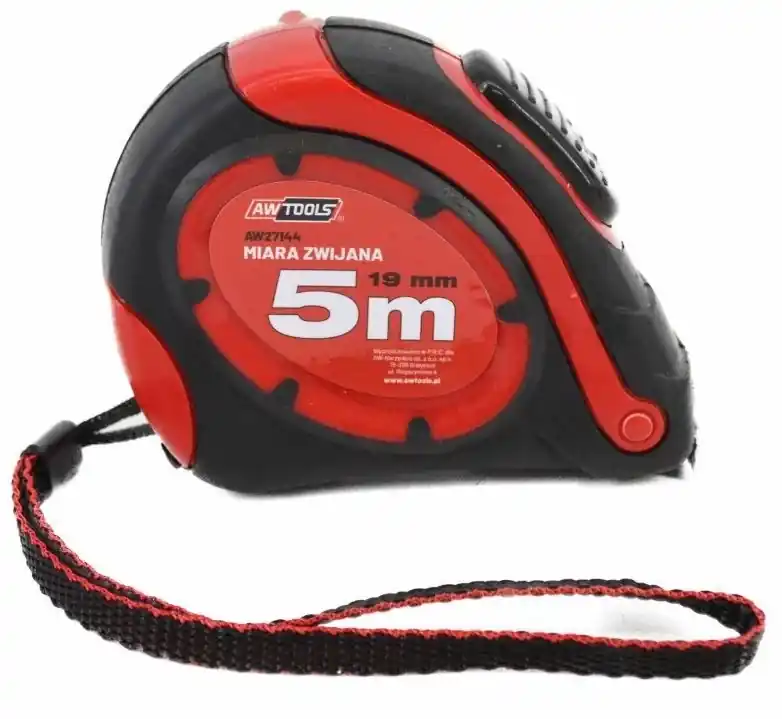 AWTools mérőszalag Professzionális acél mérőszalag rögzítőszegecsekkel megerősített mágneses véghoroggal.Ergonomikus ABS ház, TPR bevonattal.Sárga acélszalag, nylon bevonattal, jól látható fekete metrikus beosztással.Övcsipesszel és csuklópánttal felszerelve.Megbízható szalagtekerccsel és hüvelykujj által működtetett reteszelő rendszerrel, valamint 1 STOP gombbal felszerelve.Ellenáll a kopásnak és az időjárási viszonyoknak.Tökéletes mérőeszköz otthoni vagy professzionális használatra.