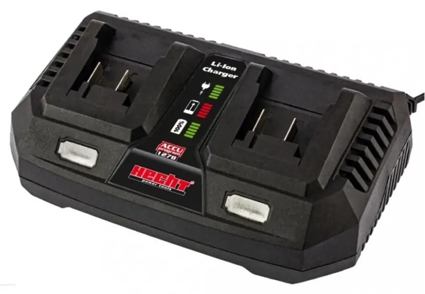 Hecht 001289 CH akkumulátor gyorstöltő két akkumulátornakAz ACCU 1278 programcsalád része.A modern lítium akkumulátorok könnyűek, nagy mennyiségű energiát tárolnak, és megfelelő gondoskodás mellett viszonylag hosszú élettartamúak. Hátrányuk a magasabb ár.  Az ACCU program azáltal küszöböli ki ezt a hátrányt, hogy lehetővé teszi, hogy több különböző termék egyetlen akkumulátorról működjön.Ezenkívül az ACCU 1278 program keretében mind a műhelyszerszámok, mind egyes kerti berendezések egyféle akkumulátortípussal működtethetők. Ugyanaz az akkumulátor, amely például egy fúrógépet működtet, egy metszőfűrészt vagy egy sövényvágót is működtethet.Li-Ion akkumulátorok töltésére alkalmas.LED kijelző: jelzi a töltés állapotát, a feltöltött állapotot.Kompakt kialakításának köszönhetően könnyen tárolható.