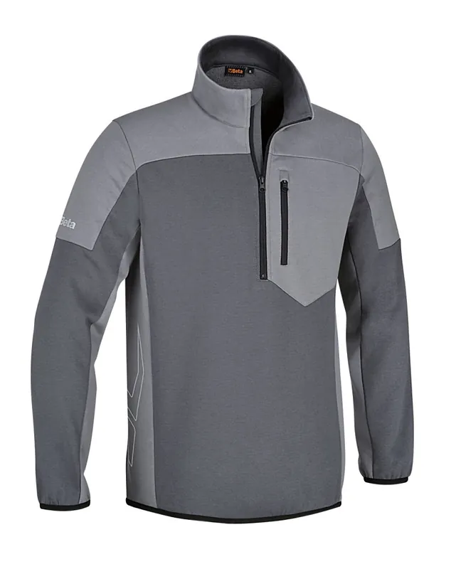 7643G S Rövid cipzáras hosszú ujjú felső, 80% pamut, 20% poliészter, 280 g/m2, antracit/világos szürke – Beta – 076430001