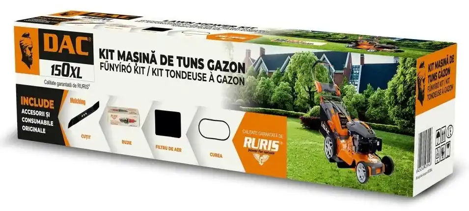 DAC 150 XL fűnyíró készletA szett tartalmazza a fűnyíró karbantartásához szükséges alkatrészeket, amelyek cseréje nagy gyakorisággal történik.A készlet segítségével a készülék használója biztos lehet abban, hogy sokáig tudja élvezni 150XL fűnyíró teljesítményét.A készlet tartalma:mulcsozó késgyújtógyertyalégszűrőékszíjcsavarhúzóKompatibilis a Ruris DAC 150XL fűnyíróval.