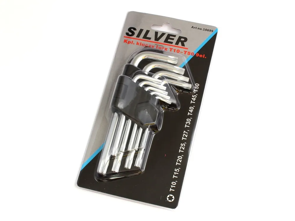 Torx 9db kulcs készlet (furatos)9db Torx: T10, T15, T20, T25, T30, T35, T40, T45, T50