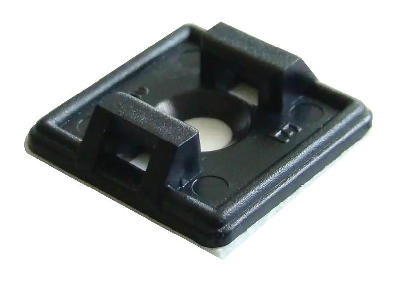 Tracon TALP271-2 Öntapadós/csavarozható, 2oldalt fűzhető kötegelő talp,fekete 26,5×26,5mm, d=4,3mm, PA6.6>>Megfelelőségi nyilatkozat<<