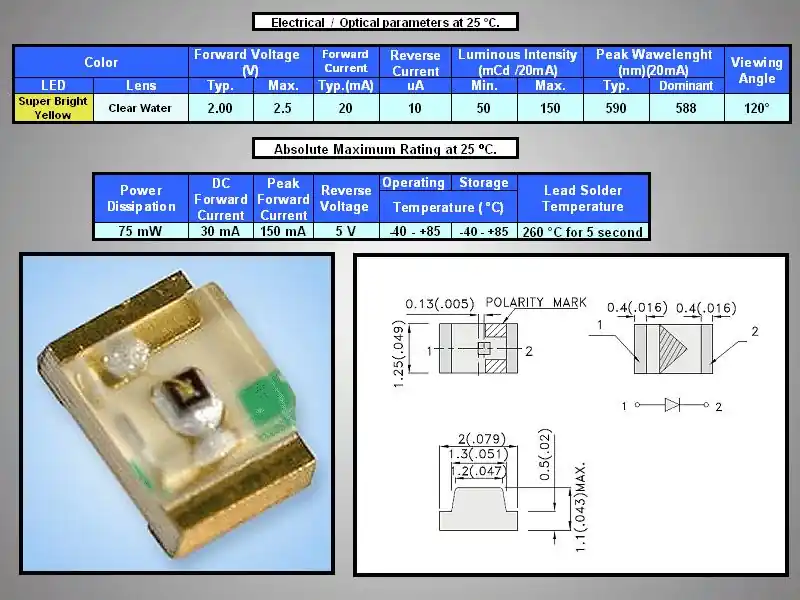 Újdonság 0805 sárga, víztiszta 36…100mcd LED-SMD Y 0100