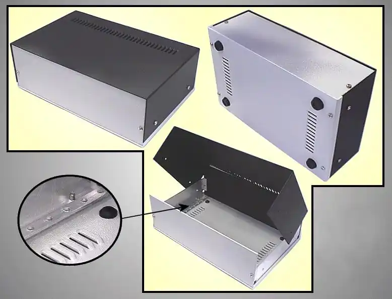 Univerzális fém műszerdoboz, beépített szerelősínnel, gumilábakkal, prototípusok, egyedi készülékek építéséhez