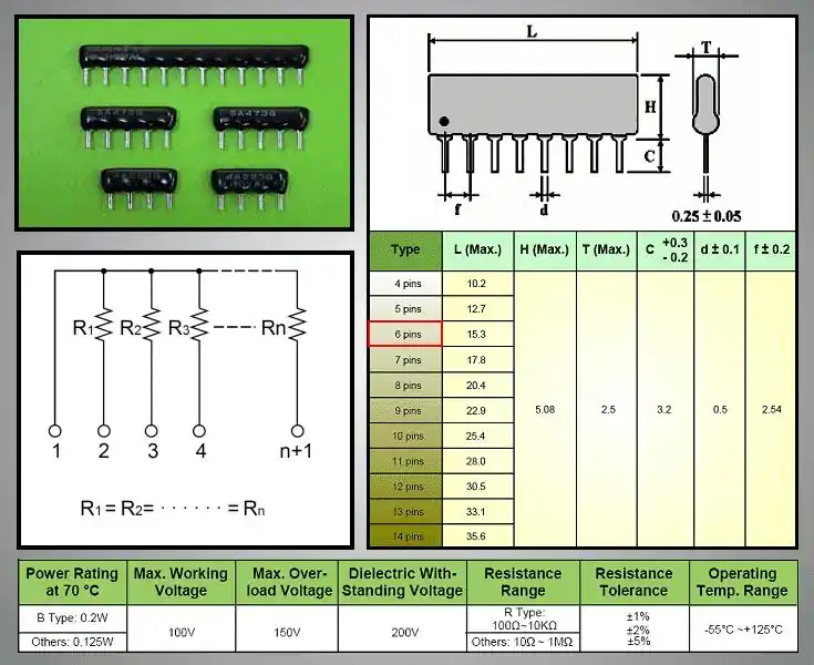 Újdonság ellenállás LINE 5x22K 2% 6p.SIP RES X5 22K mennyiség