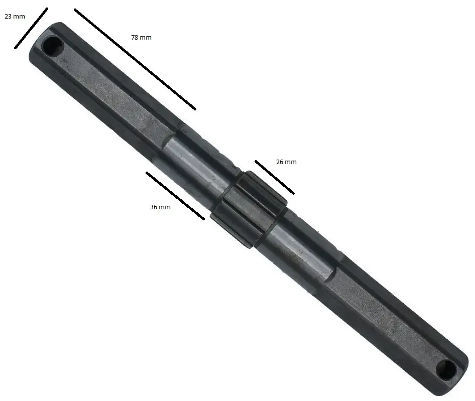 Kihajtás tengely Ruris rotációs kapákhozKompatibilis modellek: DAC 7009K, 7000K, 6500K, 6000K, Ruris 7088, Gigant 6048, Zimbru 6568, 6559, 6544, 6538, 6530, 6529