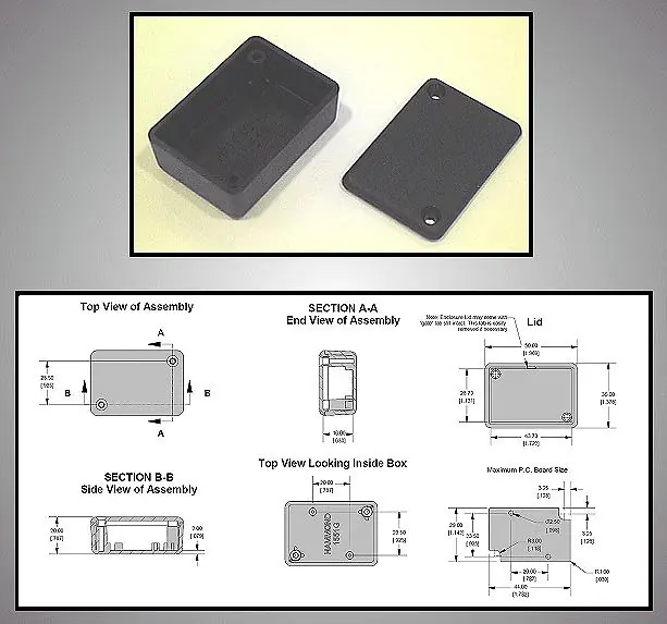 Univerzális műanyag doboz 50x35x17mm, fekete BOX HM1551GBK Autentikus mennyiség