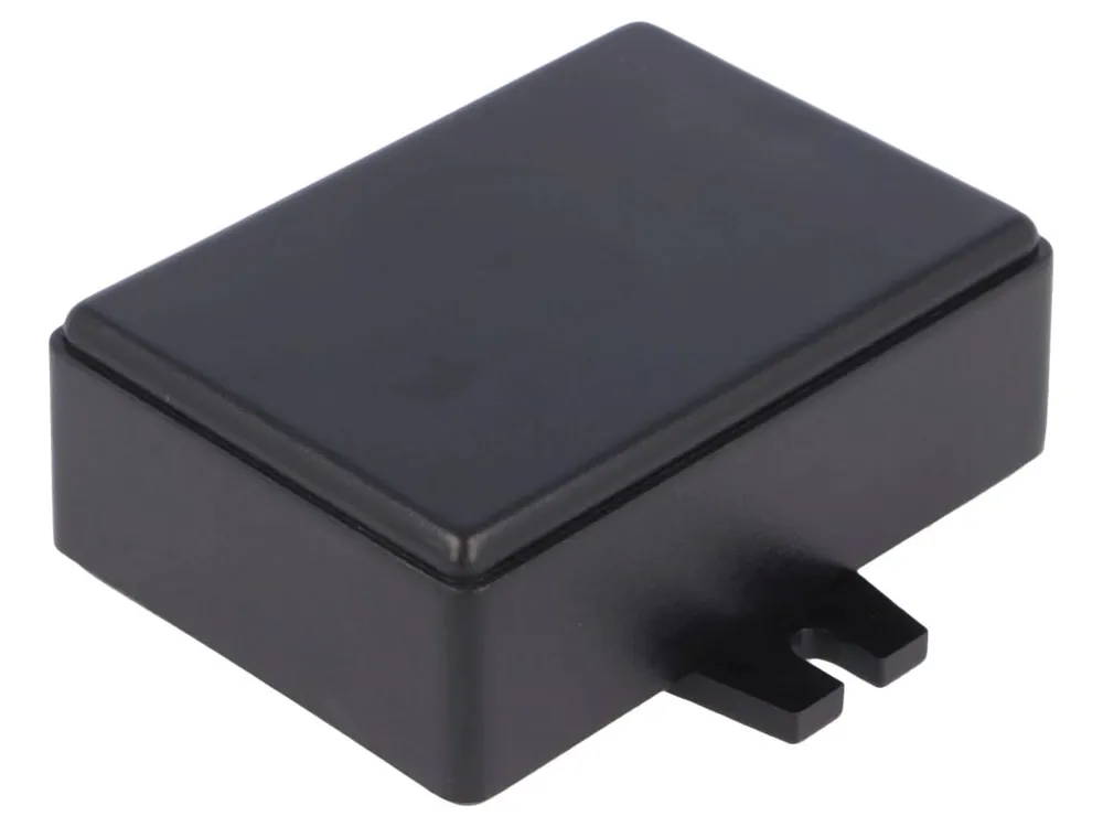 Univerzális műanyag doboz 69x49x26mm rögzítőfüllel, fekete