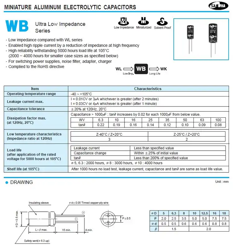 Utolsó esély ELKO 560uF 35V 105°C 10×20 Low-Esr WB 560/35P-105ESR S