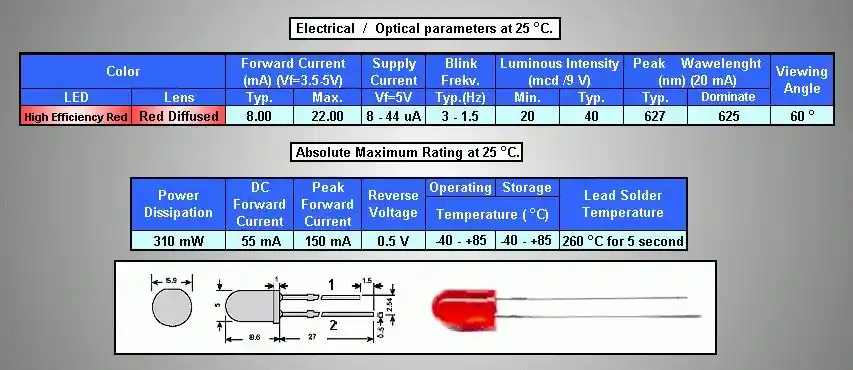 LED5mm villogó piros diffúz 20-40mcd L-56BIDHIGH Efficiency RED (GaAsP/GaP)