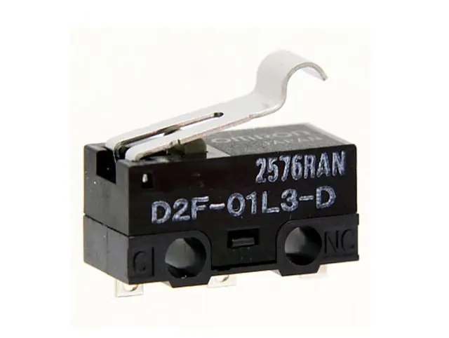 Utolsó esély Mikrokapcsoló 0,1A 30Vdc ON-(ON) ( MOM ) 3p. 12.8×5.8x6mm, karos hajlítva D2F-01L3-D SW11420LKH-01L3-D