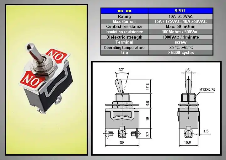 Utolsó esély Miniatűr karos kapcsoló 250VAC 10A 1x3p. ON-ON, csavaros (TS-16) SW2010CS/2
