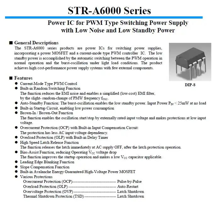 Utolsó esély PWM Controller Low Noise and Low Standby Power 7p. DIP STRA6069H
